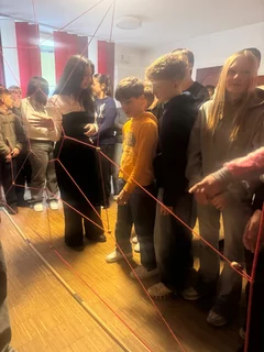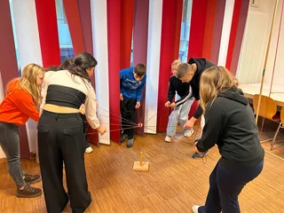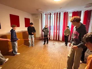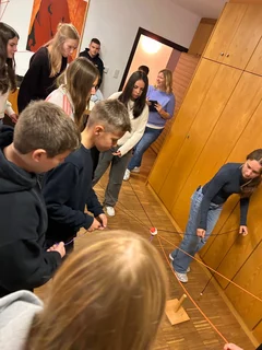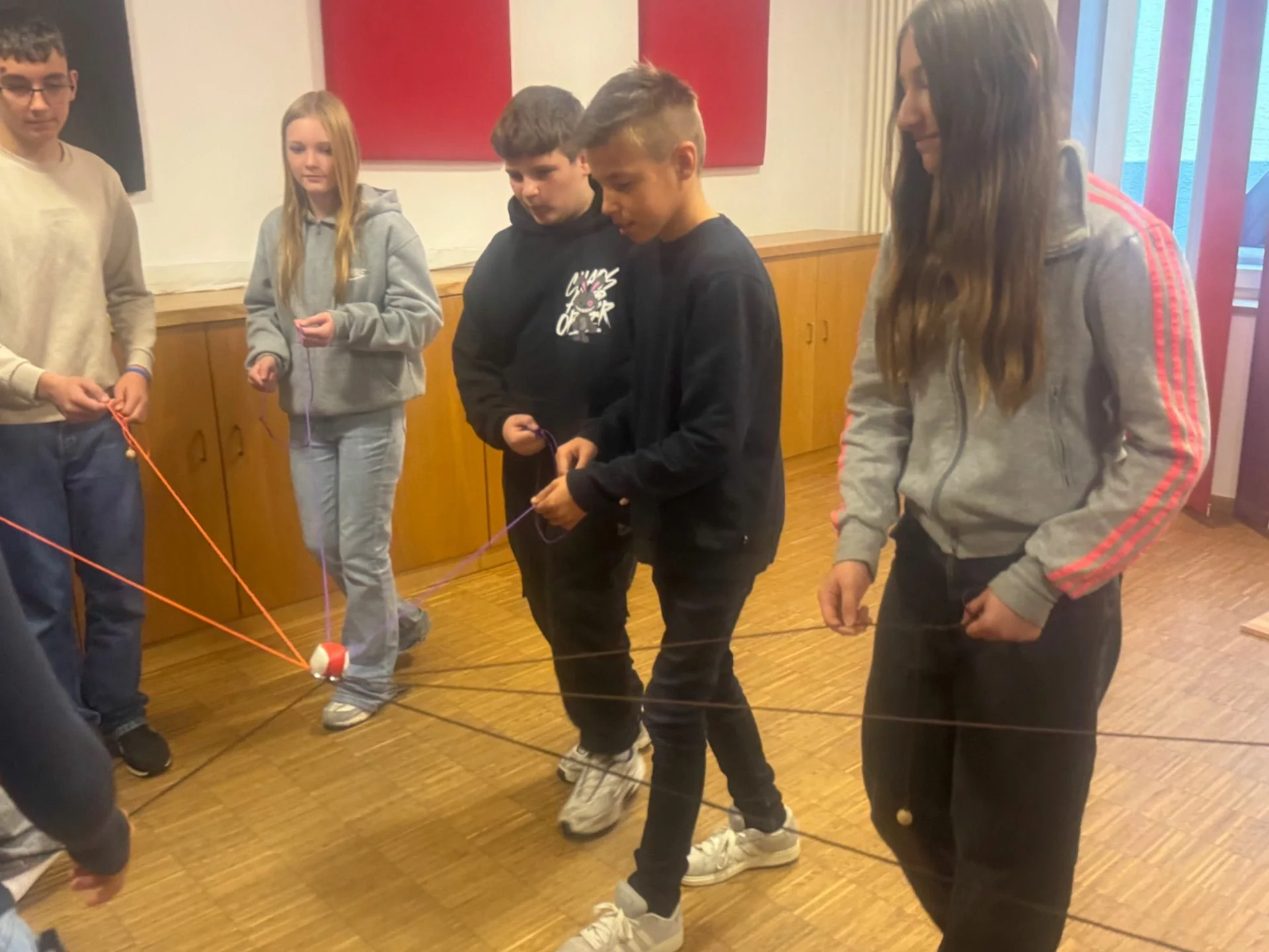 Bevor sich die Schülerinnen und Schüler aber in die Arbeit stürzten, durften sie sich unter Anleitung von Sozialpädagogin Lisa Tanzer mit zwei Gruppenspielen näher kennenlernen und herausfinden, wie schnell man ans Ziel kommt, wenn ein Problem gemeinschaftlich gelöst wird. Dabei erkannten die Teilnehmer, wie wichtig es ist, dass alle an einem Strang ziehen und die Unterstützung eines jeden Einzelnen von großer Bedeutung ist.